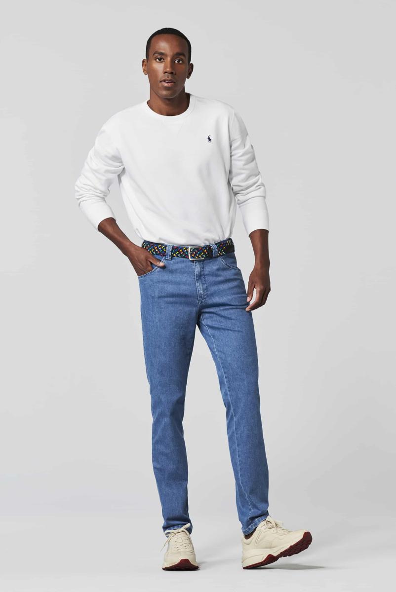Deze Meyers jeans is een toonbeeld van uitzonderlijk vakmanschap, vervaardigd uit premium denim dat zich aanpast aan je bewegingen. De jeans heeft een tijdloze uitstraling, versterkt door subtiele details zoals de stijlvolle riemlussen en de klassieke blauwe wassing. Steekzakken voor en paspelzakken achter bieden zowel functionaliteit als een strakke afwerking. De denimstof garandeert een lange levensduur, terwijl jij geniet van ultiem draaggemak.