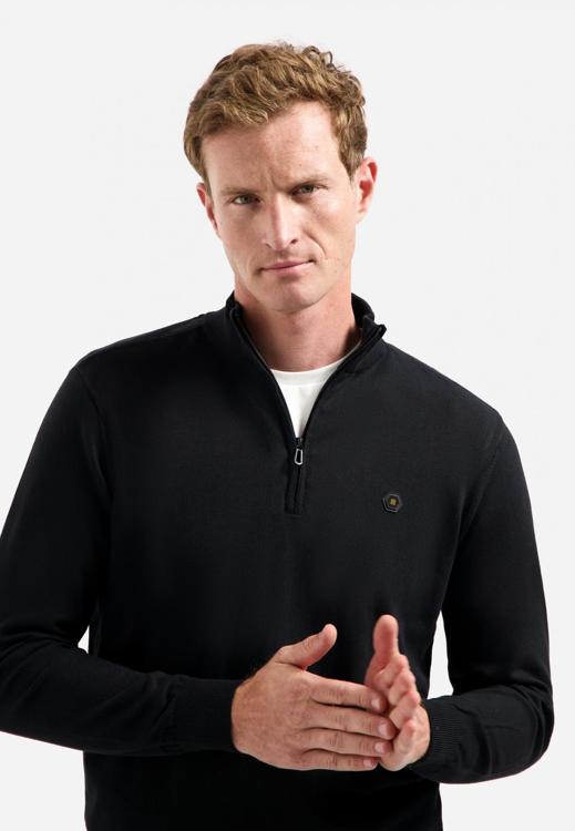 De No Excess Trui N2185, van het gerenommeerde merk No Excess, is ontworpen voor heren. Deze trui is vervaardigd van hoogwaardig materiaal dat zacht aanvoelt en duurzaamheid garandeert. De zwarte kleur geeft het een tijdloze uitstraling en de opstaande kraag met ritssluiting voegt een extra stijlvol detail toe. Het subtiele No Excess logo op de borst benadrukt de kwaliteit en exclusiviteit van dit kledingstuk.