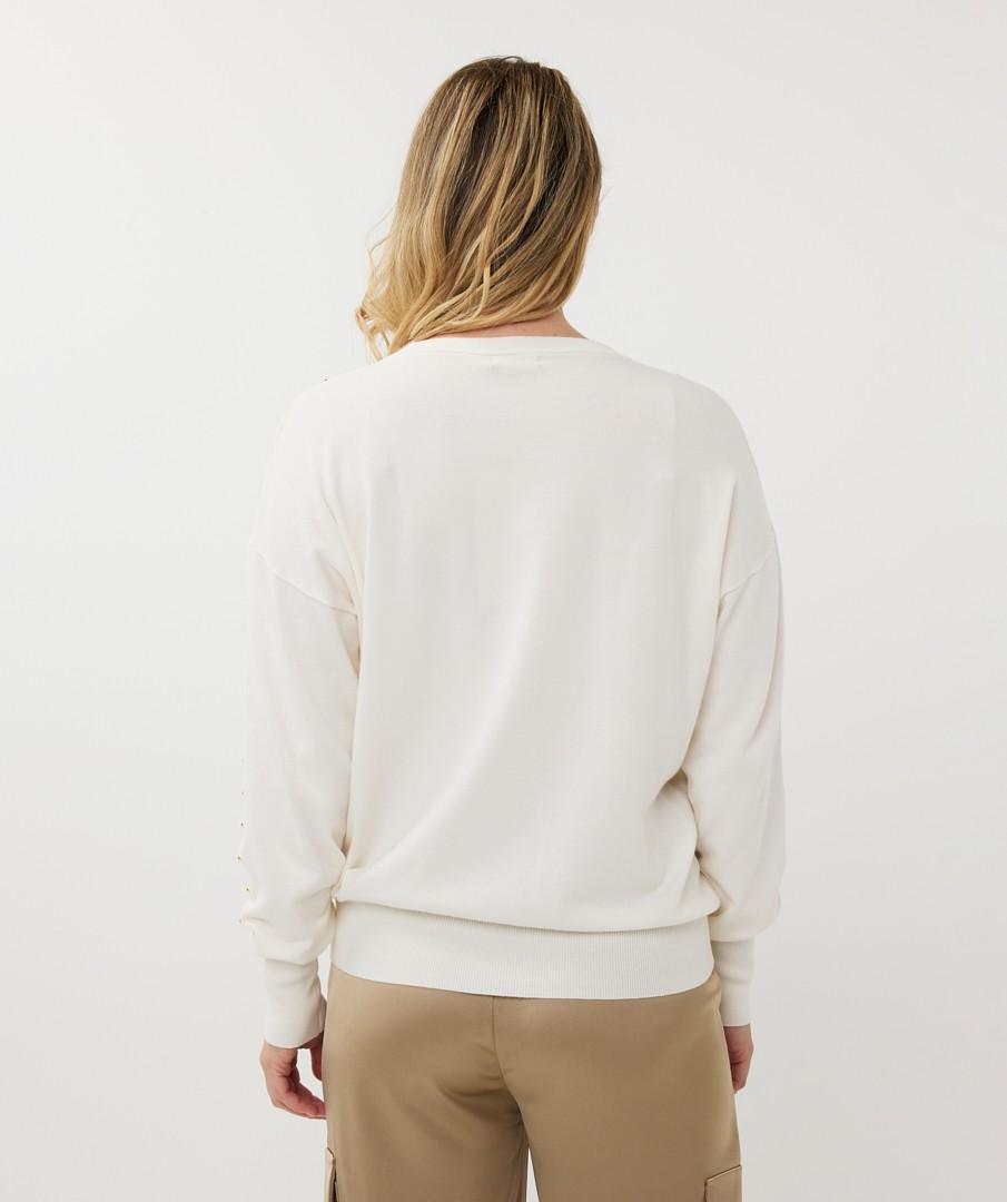 Deze prachtige trui is vervaardigd uit hoogwaardige materialen en biedt ultiem comfort. De zachte, crèmekleurige tint maakt het een perfecte keuze voor elke gelegenheid. Het unieke detail van studs die subtiel de mouwen sieren, geeft een speelse twist aan dit klassieke ontwerp. Met de Esqualo Trui SP25.07010 voeg je een stijlvol en tijdloos kledingstuk toe aan je garderobe.