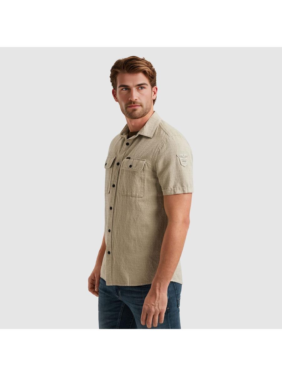 Dankzij de neutrale kleur is dit overhemd ideaal te combineren met een donkere jeans of een nette pantalon, perfect voor zowel informele als semi-formele gelegenheden. De korte mouwen maken het ideaal voor zomerse temperaturen of als modieuze laag onder een jas.