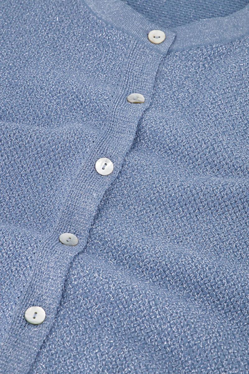 Met zijn tijdloze ontwerp sluit deze cardigan naadloos aan bij de nieuwste modetrends. Beschikbaar in een frisse, lichtblauwe tint die gemakkelijk te combineren is met zowel casual als nette outfits. Draag het over een eenvoudige top voor een moeiteloze look die je zowel overdag als 's avonds kunt dragen.
