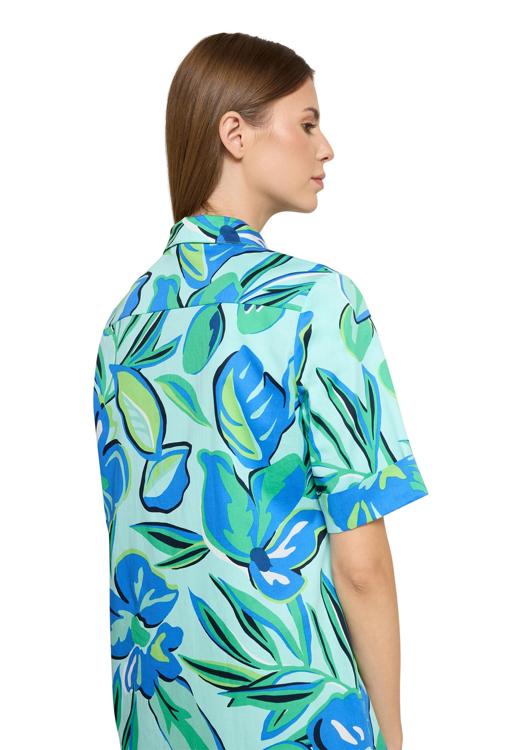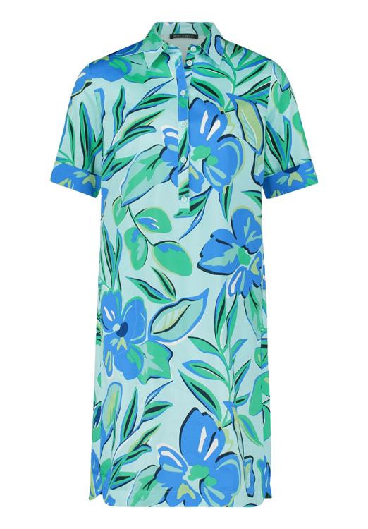 Gemaakt van hoogwaardige materialen, is dit kledingstuk een onmisbare aanvulling voor je garderobe. De opvallende bloemenprint in frisse blauwe en groene tinten geeft de jurk een zomerse uitstraling. Dankzij de klassieke kraag en knoopsluiting straalt het een tijdloze charme uit. Ervaar de perfecte pasvorm en hoogwaardig vakmanschap van Betty Barclay.