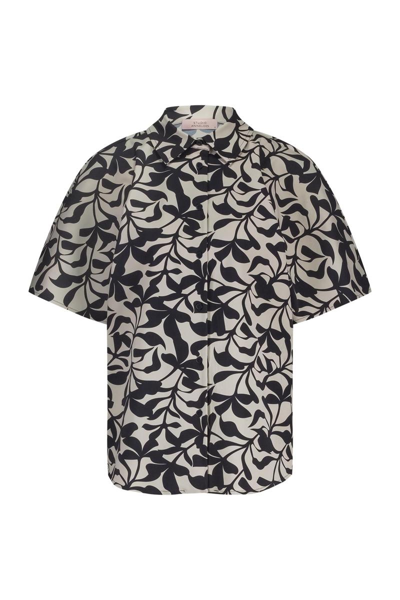 Deze damesblouse van Studio Anneloes is gemaakt van hoogwaardig materiaal, met een opvallend zwart-wit bladerpatroon. De blouse heeft een klassieke kraag en is voorzien van een knoopsluiting aan de voorkant, wat het een tijdloze uitstraling geeft. Dankzij de korte mouwen is het ideaal voor zowel warme dagen als een gelaagde outfit wanneer het afkoelt.