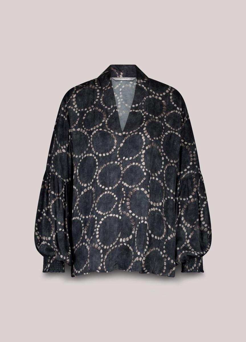 De Summum blouse is een verfijnd kledingstuk dat gemaakt is voor elke gelegenheid. Het kenmerkende dessin met cirkelpatronen voegt een vleugje dynamiek toe, terwijl de subtiele V-hals en manchetten zorgen voor een elegante touch. De blouse is vervaardigd van hoogwaardige materialen, wat zorgt voor een zachte aanraking en langdurig draagcomfort. Een veelzijdige keuze binnen de damescategorie, perfect geschikt om moeiteloos je garderobe uit te breiden.