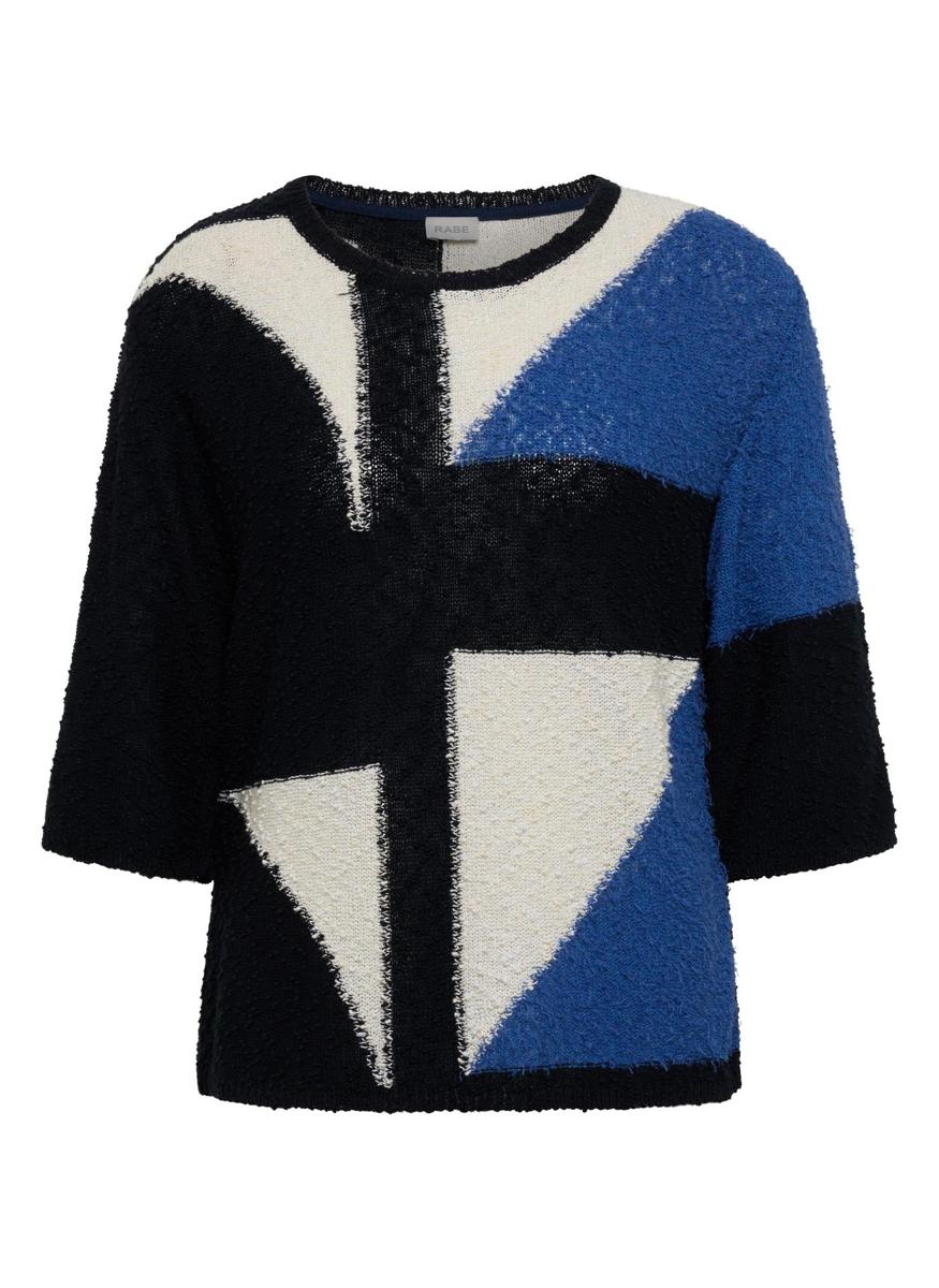 De Rabe Trui 55-114605 is gemaakt van hoogwaardige materialen die zorgen voor een zachte en comfortabele pasvorm. Deze dame trui valt op door haar unieke kleurpatroon, bestaande uit blokken van crème, donkerblauw en een vleugje levendig blauw. De driekwartmouwen en de subtiele ronde halslijn maken het ontwerp compleet, terwijl het speelse ontwerp een moderne look biedt. Deze trui is ideaal voor elke gelegenheid.