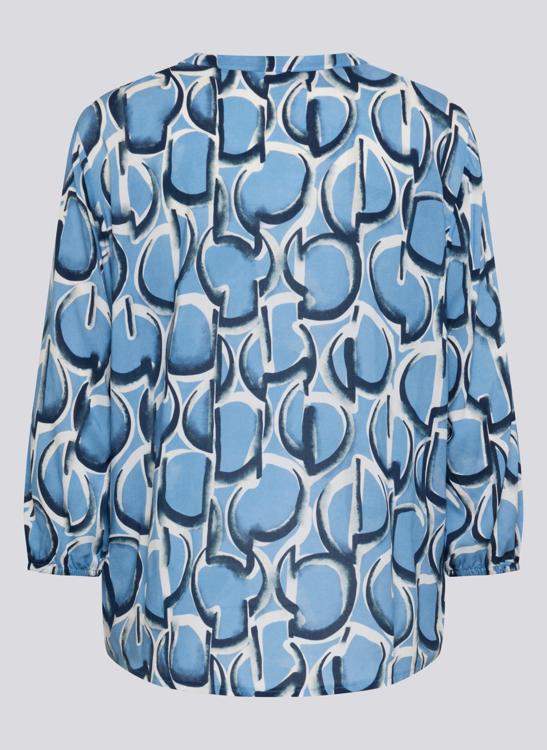 Deze blouse straalt vrouwelijkheid uit met zijn subtiele v-hals en driekwart mouwen. Het heeft een opvallende print in verschillende blauwtinten die elke outfit een levendige touch geeft. De lichte stof zorgt voor ultiem comfort, terwijl de knoopsluiting een klassieke finishing touch biedt. Gemaakt voor dames die zowel stijl als comfort waarderen.