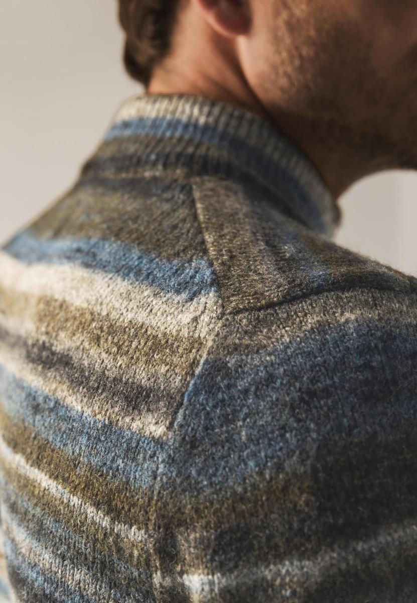 De trui heeft een uniek gestreept patroon in rustige kleuren die makkelijk te combineren zijn. Draag deze met een spijkerbroek voor een casual look of combineer met een nette broek voor een smart-casual outfit. Perfect voor elke gelegenheid, van een dag op kantoor tot een ontspannen weekend.