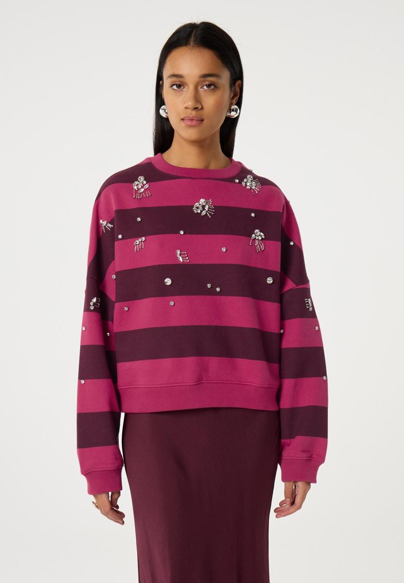 Gemaakt van hoogwaardig materiaal, deze gestreepte trui van Fabienne Chapot valt op door de speelse patronen die de klassieke strepen vernieuwen. De comfortabele ronde halslijn en lange mouwen maken het ideaal voor koelere dagen. De trui is voorzien van subtiele ingeweven motieven die het ontwerp een moderne twist geven. Shop deze dames trui nu en ervaar tijdloze elegantie vermengd met eigentijdse stijl.