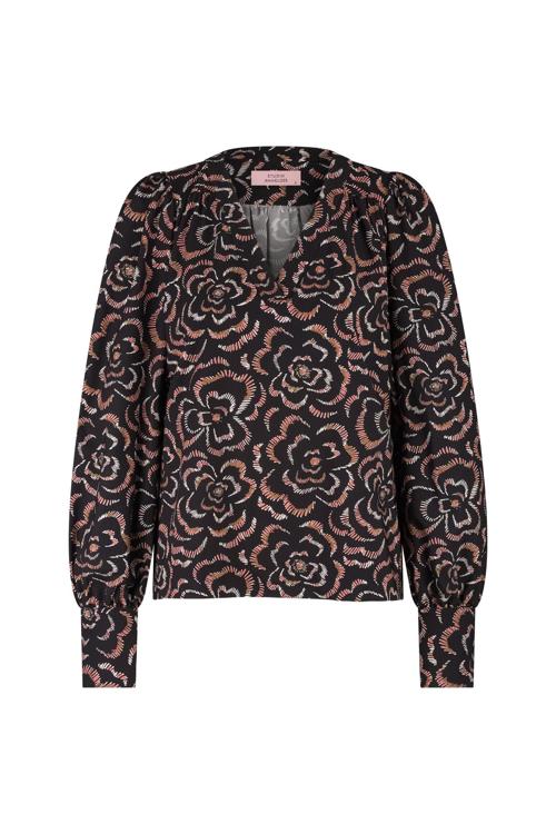 Gemaakt van hoogwaardig materiaal biedt deze top optimaal comfort en stijl. Het heeft een stijlvolle V-hals en lange mouwen met comfortabele manchetten. De opvallende bloemendessin in een mix van donkere en lichte kleuren maakt het een perfect kledingstuk voor elke gelegenheid. Mooi afgewerkt en duurzaam, ben je verzekerd van een product met kwaliteit dat zowel in een casual als formele setting gedragen kan worden.