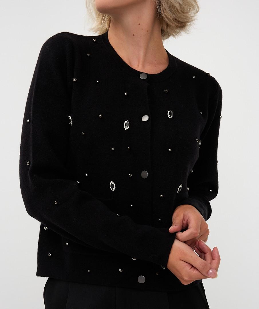 Dit Esqualo vest voor dames is een tijdloos kledingstuk in de categorie Truien & Vesten. Het vest is voorzien van opvallende decoratieve details, waaronder sierlijke patronen en glinsterende knopen. Met een klassieke ronde hals en een comfortabele sluiting, biedt het zowel stijl als gebruiksgemak. De fijne stof zorgt voor een luxueus gevoel en is ideaal voor elke gelegenheid.