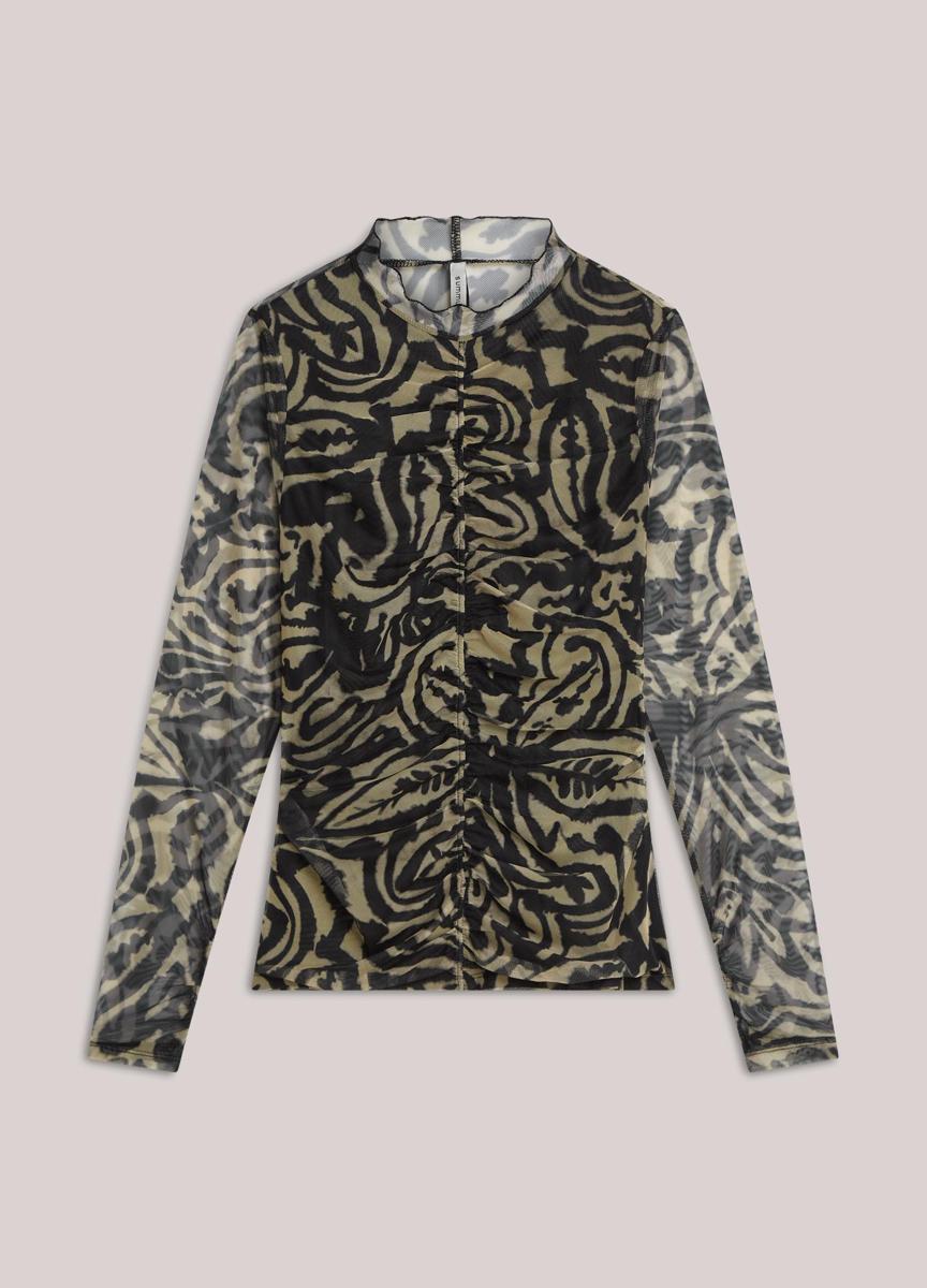 De blouse is vervaardigd van hoogwaardige materialen en heeft een opvallende ronde halslijn. Het unieke dessin met een mix van aardetinten maakt dit kledingstuk veelzijdig en tijdloos. Met de knoopsluiting aan de achterzijde biedt het zowel comfort als een perfecte pasvorm.