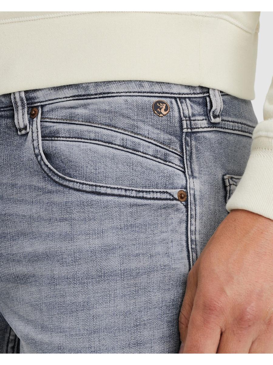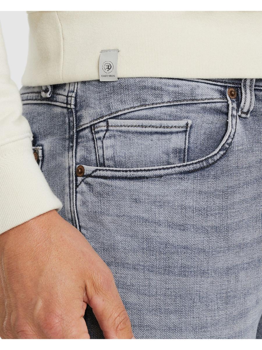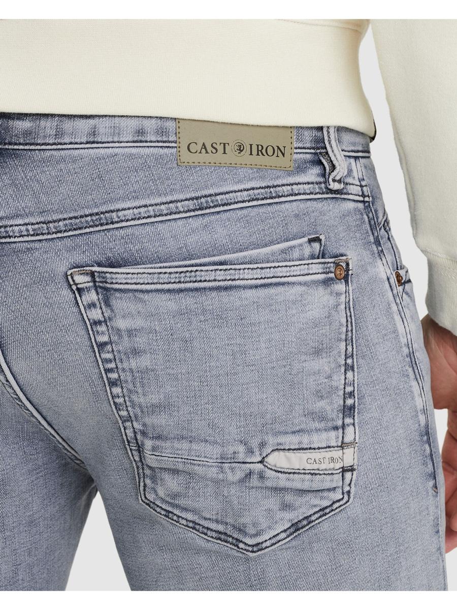 Deze heren jeans is gemaakt van stevige denim met een comfortabele, slanke pasvorm. De voorzijde heeft een knoopsluiting, aangevuld met riemlussen en een 5-pocket indeling met muntzakje. De lichtgrijze wassing met subtiele vervaging geeft een stoere, verzorgde look. Achterop zie je nette stiksels, gevormde achterzakken en een subtiele Cast Iron lettering. Een betrouwbaar kledingstuk voor dagelijks gebruik waar je lang plezier van hebt.