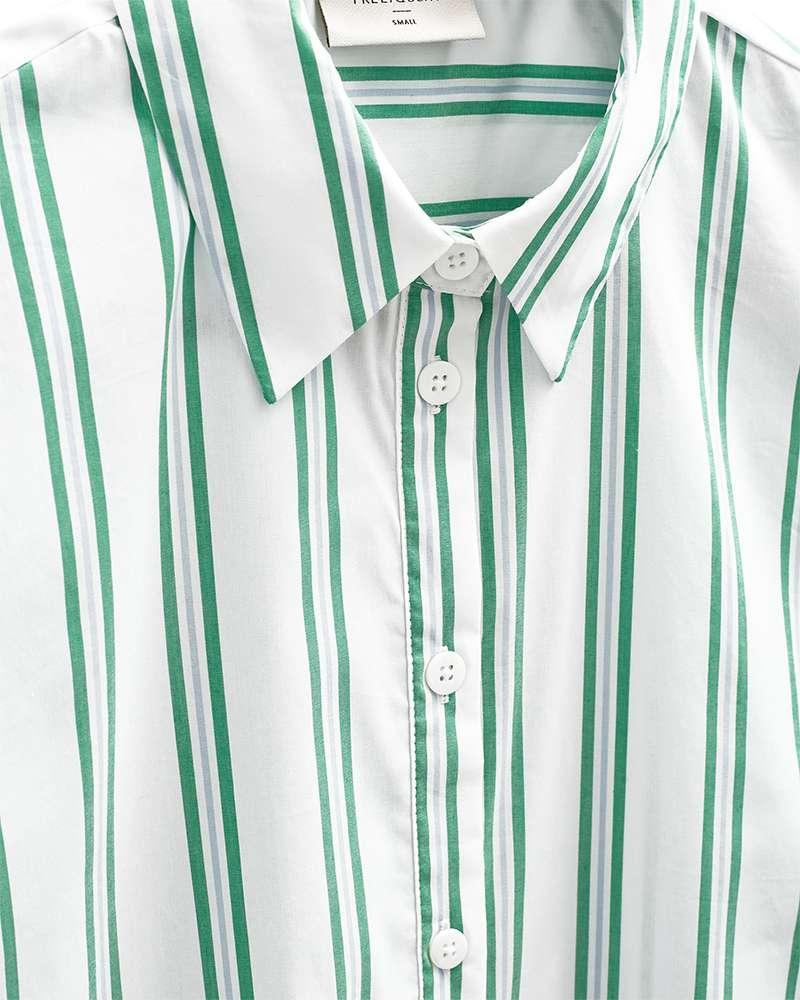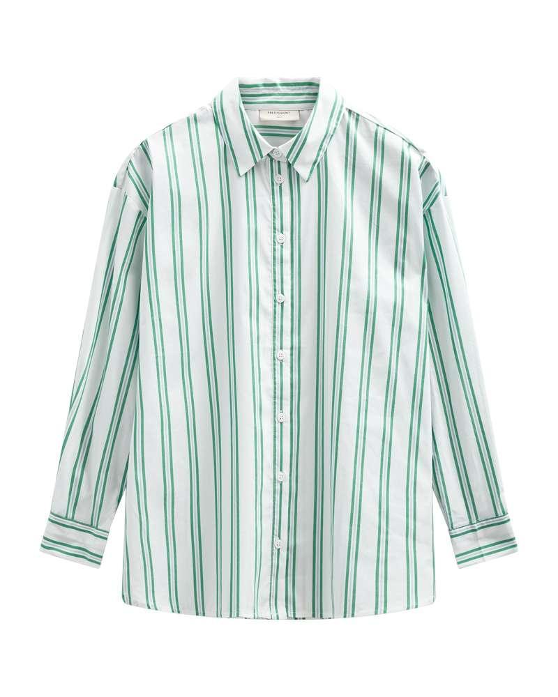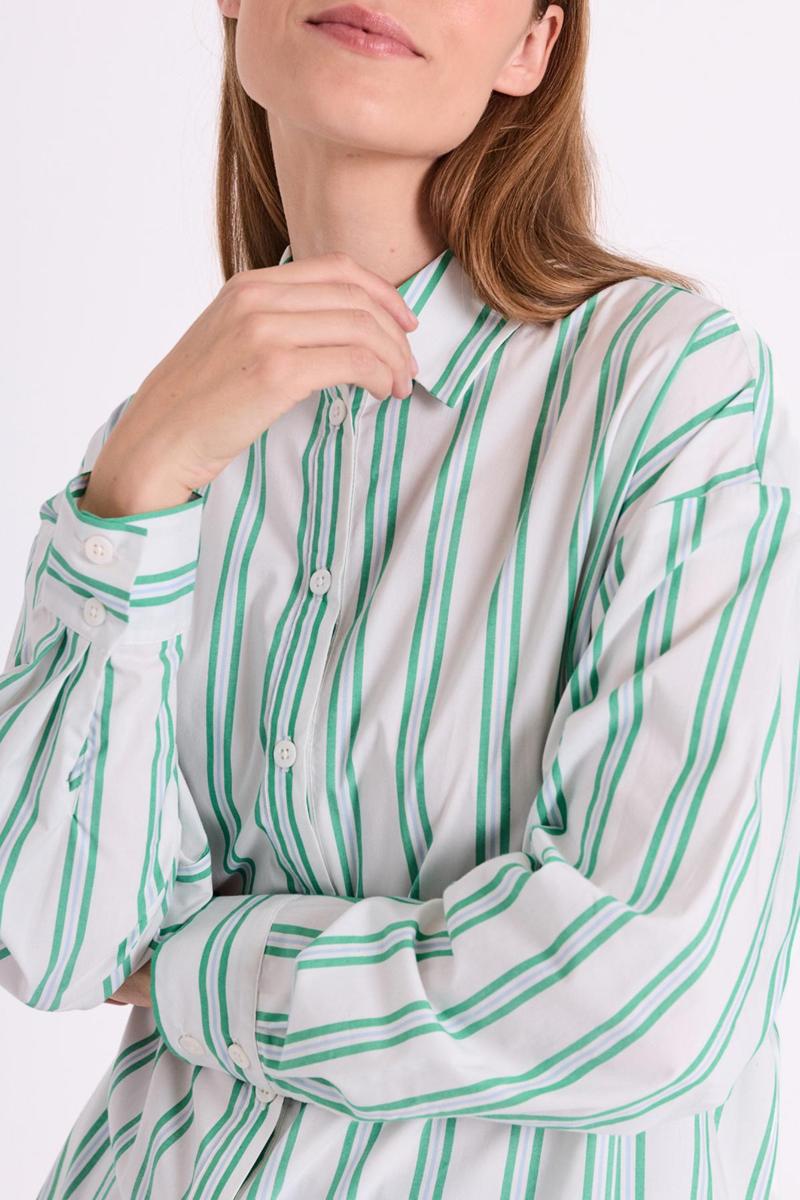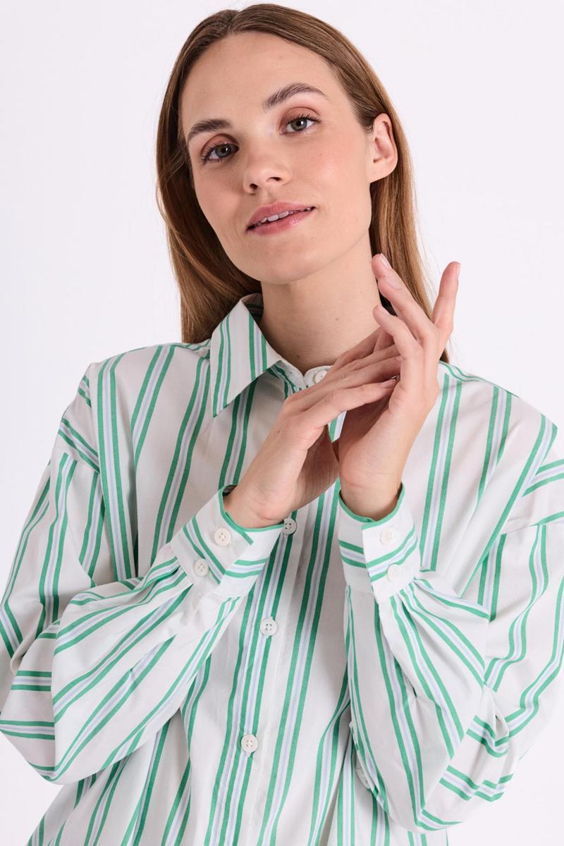 De stijl sluit aan bij de strepen-trend en het nieuwe preppy. Je combineert de damesblouse moeiteloos met een jeans en sneakers, of met een pantalon en blazer voor werk. Groene accenten matchen mooi met denim, off-white en zilverkleurige accessoires. Deze favoriet past in je capsule wardrobe-wees er op tijd bij.