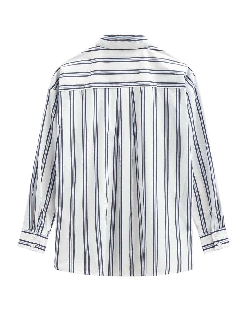 De verticale strepen sluiten aan bij de “clean tailoring” trend en geven lengte aan je silhouet. Draag de blouse Dames-waardig met een pantalon en blazer voor kantoor, of combineer casual met high-waist jeans en loafers. Voor een frisse voorjaarslook werkt de print mooi met ecru, denim of kobaltblauw.