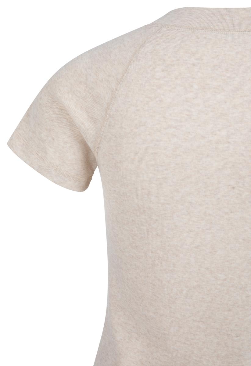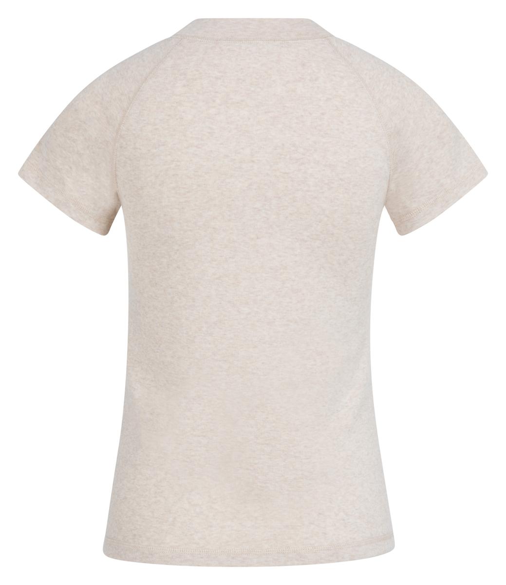 Dit T-shirt van Yaya heeft een ronde hals, korte raglanmouwen en een rechte zoom. Het melange dessin in een zachte, neutrale tint oogt rustig en modern. Pullover model zonder sluiting of zakken, uitgevoerd in soepele jersey met lichte stretch voor een mooie fit. Categorie: Dames, T‑Shirts & Tops; geslacht: Dames. Een kwaliteitsvol kledingstuk dat lang mooi blijft.