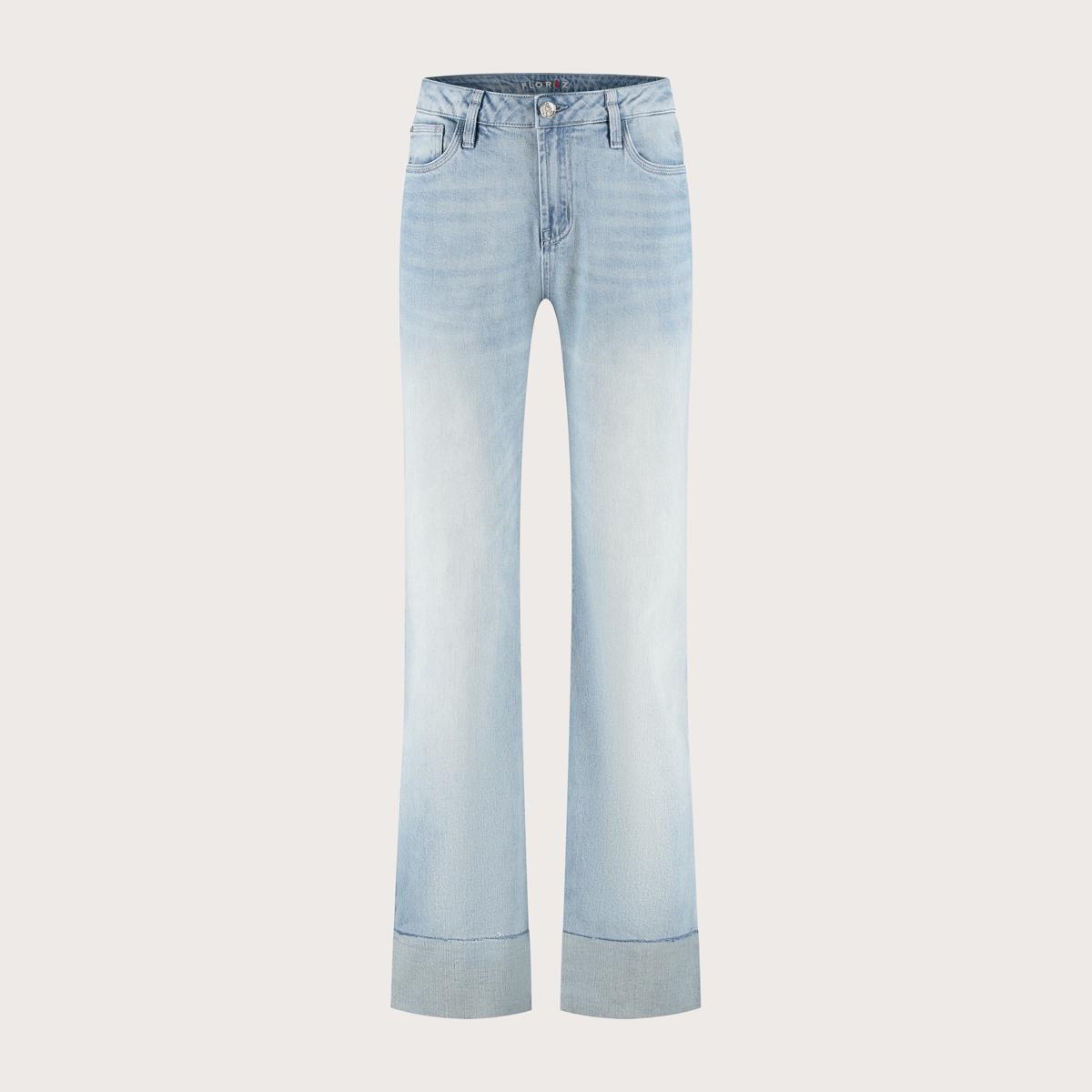 Deze Florèz jeans is uitgevoerd in lichtblauwe denim met subtiele vervagingen. De pasvorm toont wijde, rechtvallende pijpen met extra lengte en een nette geperste voorvouw. De taille is middelhoog, met een klassieke knoop-&ritssluiting en riemlussen voor een ceintuur. De afwerking is clean zonder opvallend dessin, waardoor het kledingstuk veelzijdig blijft. Een comfortabele, soepelvallende spijkerbroek die er verzorgd uitziet en lang mooi blijft.