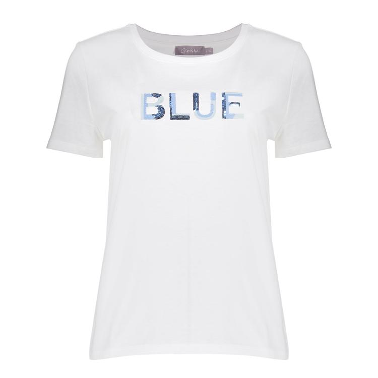 Dit T-shirt van Geisha biedt dagelijks comfort dankzij zachte jersey en een verzorgde afwerking. De ronde hals en korte mouw geven een tijdloze uitstraling. Je trekt het eenvoudig aan; sluiting ontbreekt. Op de borst staat een duidelijke frontprint met het woord BLUE in blauwtinten. Het effen witte dessin met rechte zoom maakt combineren eenvoudig binnen de categorie Dames, T-Shirts & Tops. Een betrouwbare keuze van Geisha voor je garderobe.