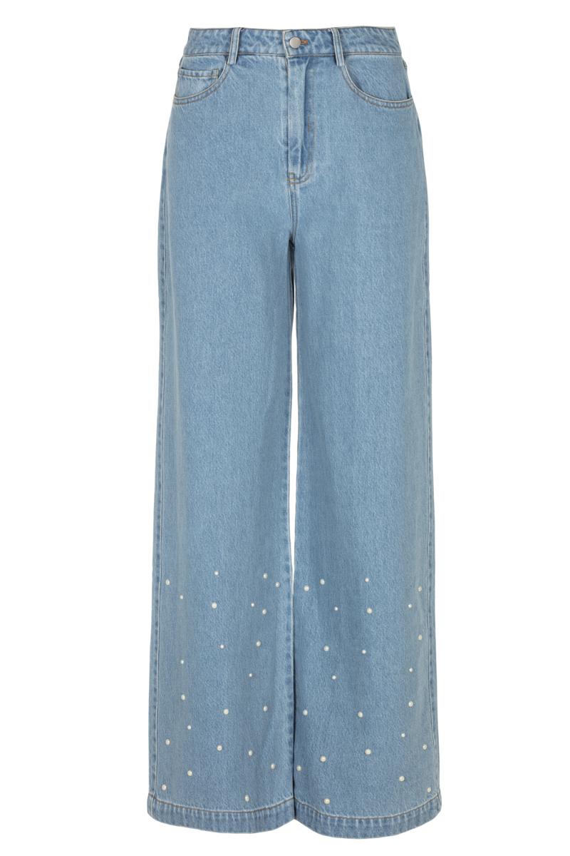 De pareldetails sluiten aan op de embellished-denim trend, terwijl de wijdvallende pasvorm modern oogt. Combineer met een strakke top en blazer voor kantoor, met sneakers voor casual of met hakken voor een avondje uit. Deze Dames jeans laat je moeiteloos switchen tussen seizoenen en stijlen.