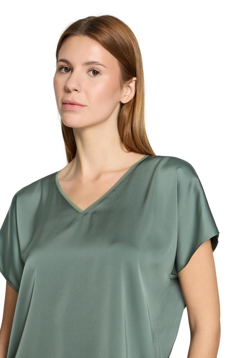 De V by Vera Mont Blouse 261-03424262 is een effen damesblouse in zacht saliegroen met een V-hals en korte aangeknipte mouw. Het ontwerp heeft geen sluiting, geen zakken en een rechte zoom voor een rustige, tijdloze look. De soepele, licht glanzende kwaliteit valt mooi om het lichaam en voelt comfortabel. V by Vera Mont staat bekend om verfijnde afwerking, waardoor dit kledingstuk lang mooi blijft.
