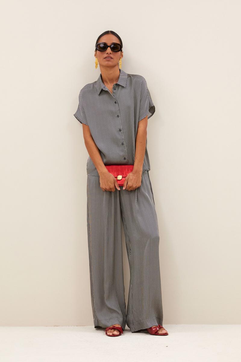 Geïnspireerd door de co-ord & relaxed tailoring-trend combineer je deze damesblouse ton-sur-ton met een wijde pantalon voor een moderne set, of met donkere denim voor een rustige werklook. Het subtiele streepje past bij minimal chic en blijft actueel. Draag met sandalen in het voorjaar of met loafers en een blazer in koelere maanden.