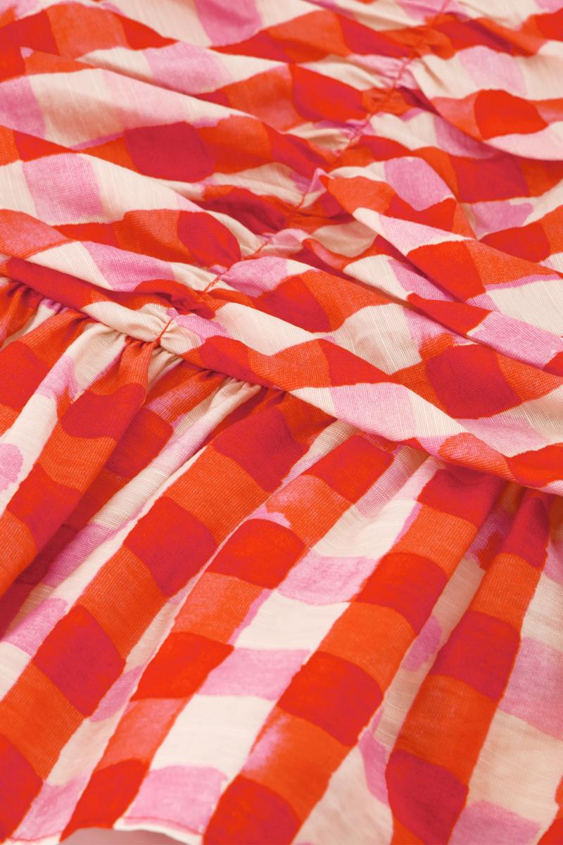 Deze top van Fabienne Chapot uit de categorie Dames, T-Shirts & Tops valt op door het frisse ruitdessin in rood & roze. De vierkante hals en korte, wijde mouw geven een moderne look. Het lijfje is voorzien van elastische smock, wat zorgt voor een mooie taille en comfortabel draaggemak. De peplumzoom valt speels over de heup. Zonder kraag, zonder zakken en zonder zichtbare sluiting; je trekt dit kledingstuk eenvoudig aan. Merk: Fabienne Chapot. Voor dames.