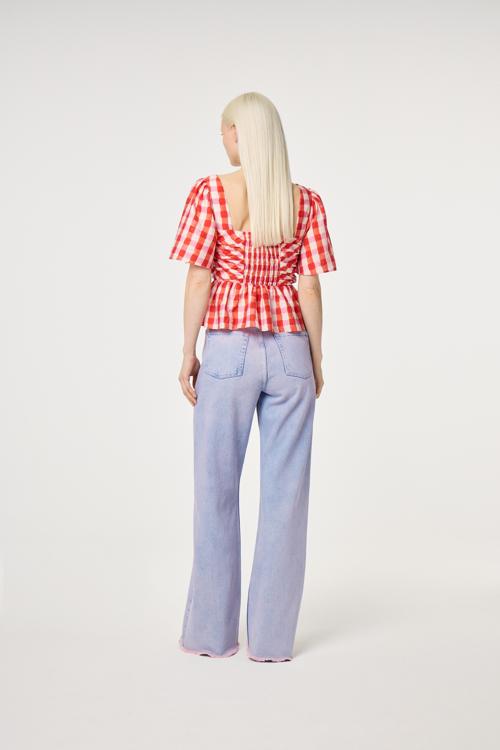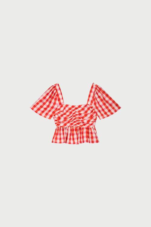 Dit Dames ontwerp past perfect in de gingham-trend en de revival van peplums. De combinatie van rood & roze oogt energiek en nieuw. Draag met een high-waist jeans of denim rok voor casual days, of met een witte wijde broek & sandalen voor zonnige momenten. Ook mooi onder een blazer op kantoor.
