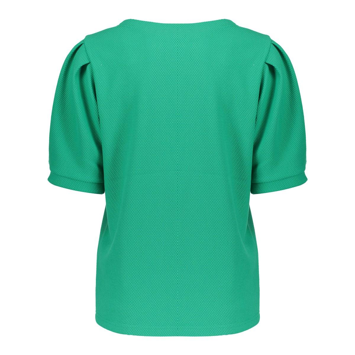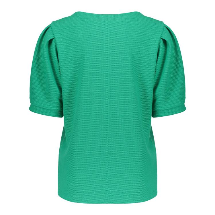 Deze dames top past in de trend van monochrome sets en frisse groentinten. Je combineert ‘m met een ton‑sur‑ton pantalon, een lichte jeans en sneakers, of met een blazer en hak voor werk en diner. Het kledingstuk werkt het hele seizoen door: van kantoordag tot weekend. Tip: laat de pofmouw spreken met subtiele sieraden.