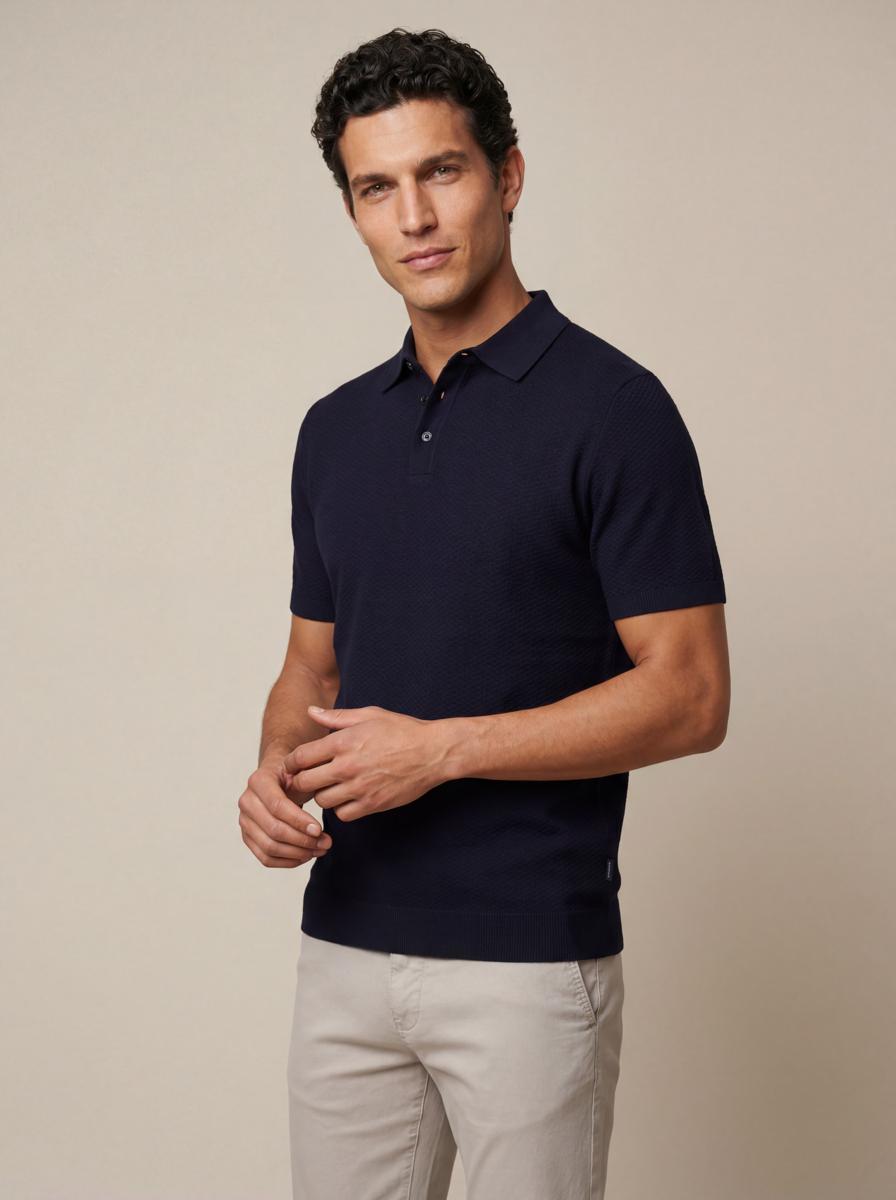 Deze heren polo van Cavallaro Napoli is uitgevoerd in een zachte, vormvaste kwaliteit voor langdurig draagcomfort. Het ontwerp heeft een nette polokraag met knoopsluiting, korte mouwen en een strakke, effen donkerblauwe uitvoering. Ribdetails bij mouw en zoom zorgen voor een verzorgde pasvorm, terwijl een subtiel merklabel aan de zijnaad het geheel verfijnt. Ademend, onderhoudsvriendelijk en gemaakt om vaak te dragen-een betrouwbaar kledingstuk voor elke dag.