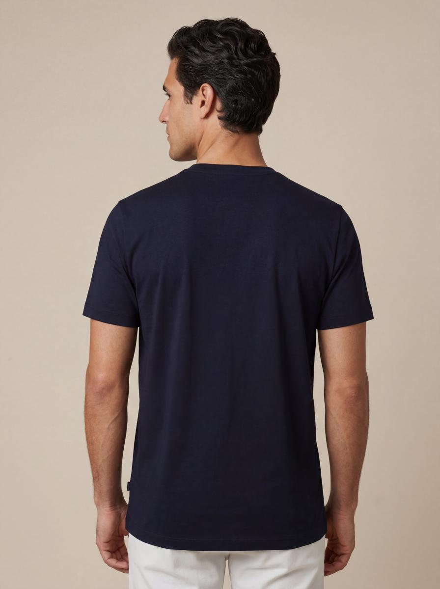 De diepe donkerblauwe kleur en het minimalistische ontwerp geven een moderne uitstraling. Je combineert dit Heren T-Shirt gemakkelijk met een chino, jeans of onder een blazer; geschikt voor kantoor en weekend. Draag het solo met sneakers of als basislaag onder een licht jack.
