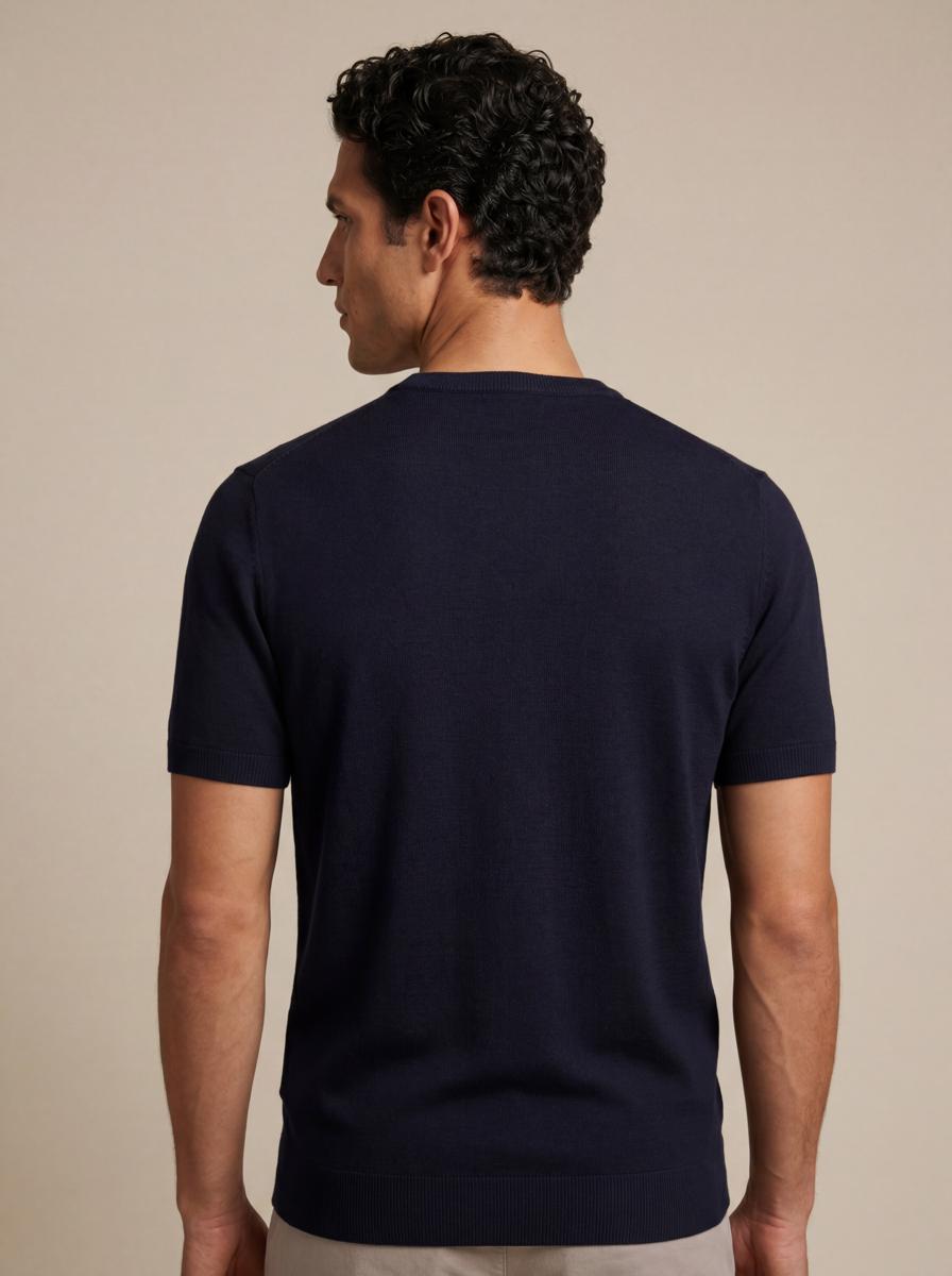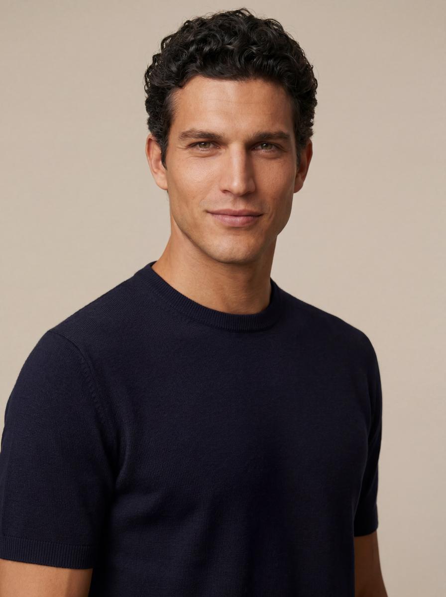 De diepe navy tint oogt luxe en veelzijdig. Je combineert het heren T‑Shirt moeiteloos met een lichte chino, een donkere denim of een blazer voor smart casual. Ideaal voor kantoor, diner of weekend.