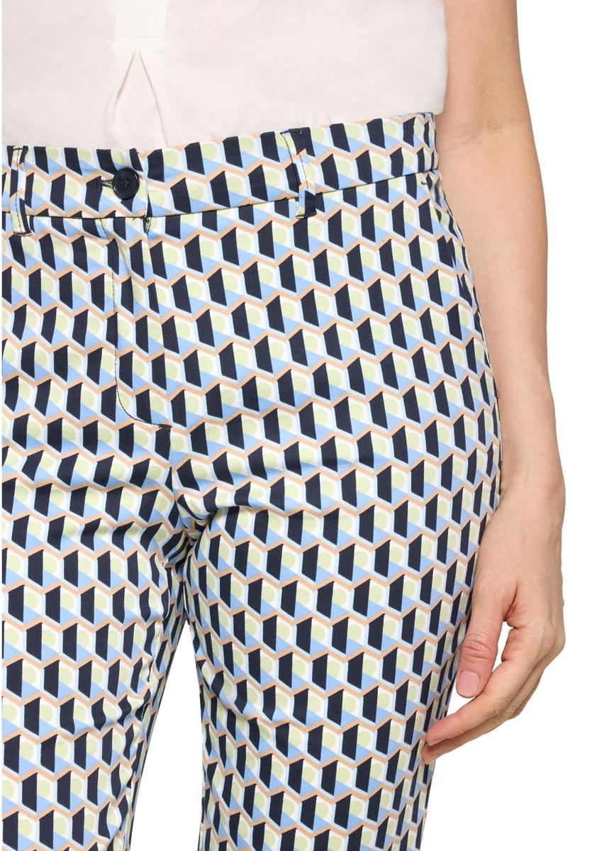 Deze dames broek van Betty Barclay valt op door het moderne geometrische dessin in marine & ecru. De pasvorm heeft recht toelopende pijpen met 7/8-lengte, een gevormde tailleband met riemlussen en een nette knoop- & ritssluiting. De soepele, comfortabele kwaliteit draagt prettig en houdt mooi vorm. Het minimalistische ontwerp zonder opvallende details legt de nadruk op het dessin, waardoor dit kledingstuk direct uitstraling geeft.