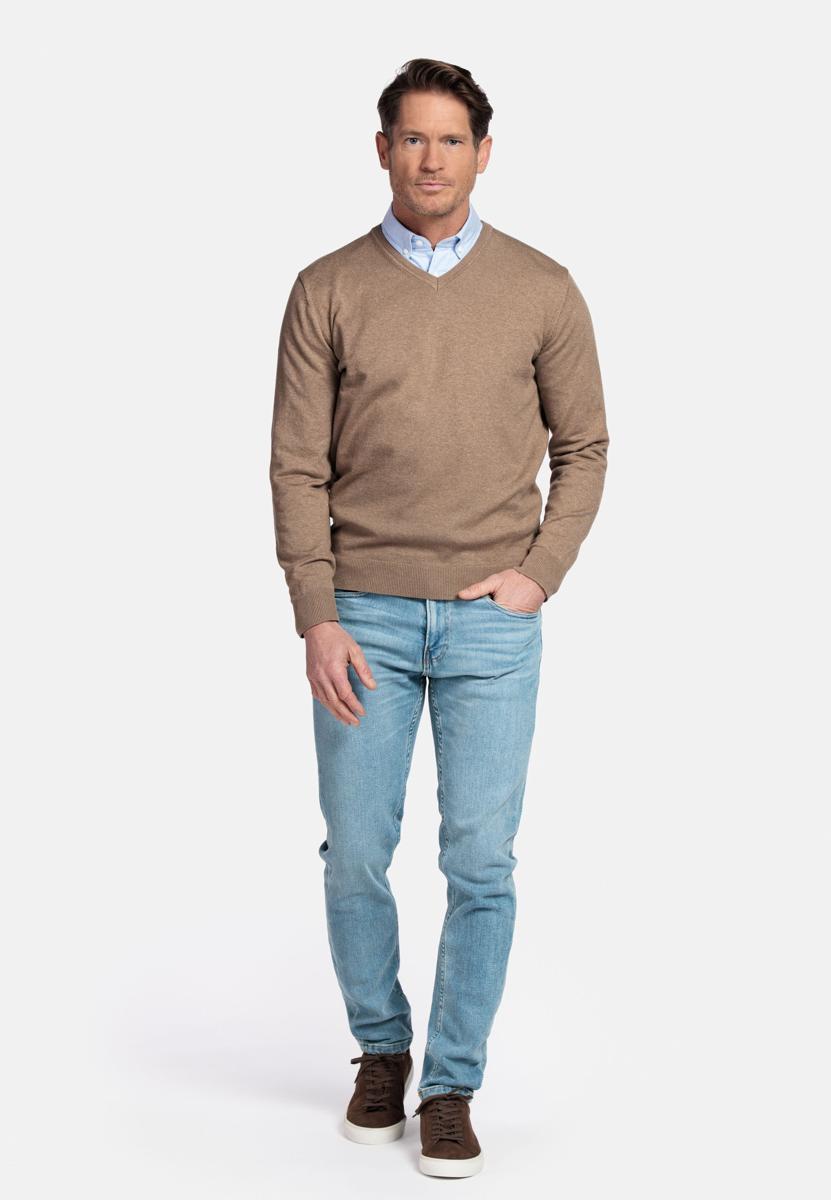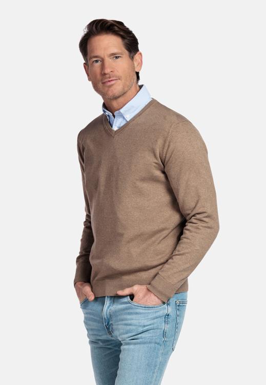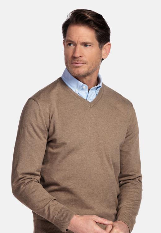 De effen beige kleur en het minimalistische ontwerp geven je look rust en klasse. Voor Heren: draag de V-hals over een wit overhemd of een T-shirt, met een chino voor kantoor of met jeans in het weekend. Combineer met een donkerblauw colbert voor extra verfijning.