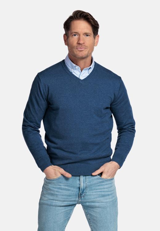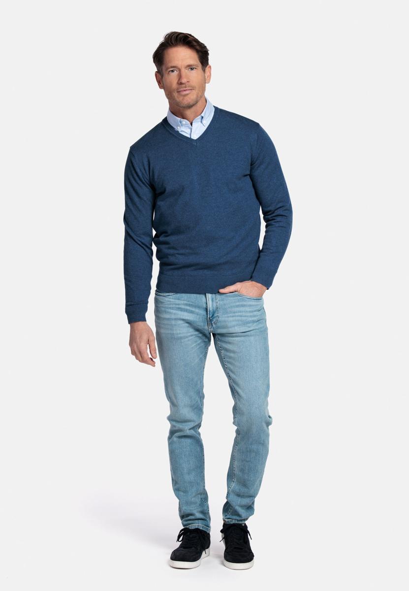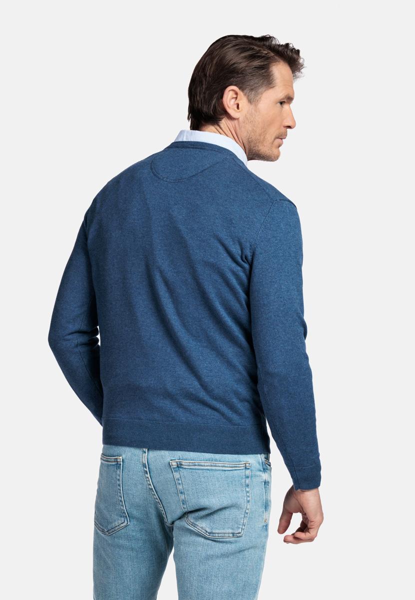 De effen donkerblauwe kleur oogt rustig en verzorgd, passend bij heren die houden van klasse. Combineer met een wit overhemd of T-shirt onder de V-hals, met jeans voor casual of met een chino en colbert voor kantoor en diner. Draagbaar in elk seizoen en eenvoudig te stylen.