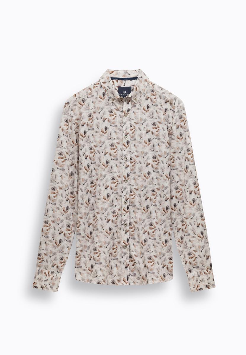 Dit kledingstuk valt op door een fijne, ademende geweven stof met zachte touch. De klassieke kraag, doorlopende knoopsluiting en lange mouwen met knoopmanchetten geven een verzorgde uitstraling. Het dessin is een all-over bladprint in aardetinten op een lichte basis. Subtiele stiksels en nette afwerking onderstrepen de kwaliteit van State of Art. Dit overhemd is een sterke basis in je garderobe en verkrijgbaar via de webshop of in de winkel bij Steegenga Mode in Friesland.