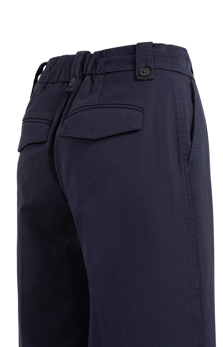 De wide-leg pasvorm sluit aan op de tailoring-trend. Het diepe navy kleurt stijlvol met een blazer en loafers voor kantoor, of met een trui en sneakers voor casual dagen. Draag hem als dames-essential in een ton-sur-ton look of met fris wit voor contrast. Een model dat seizoen na seizoen relevant blijft.