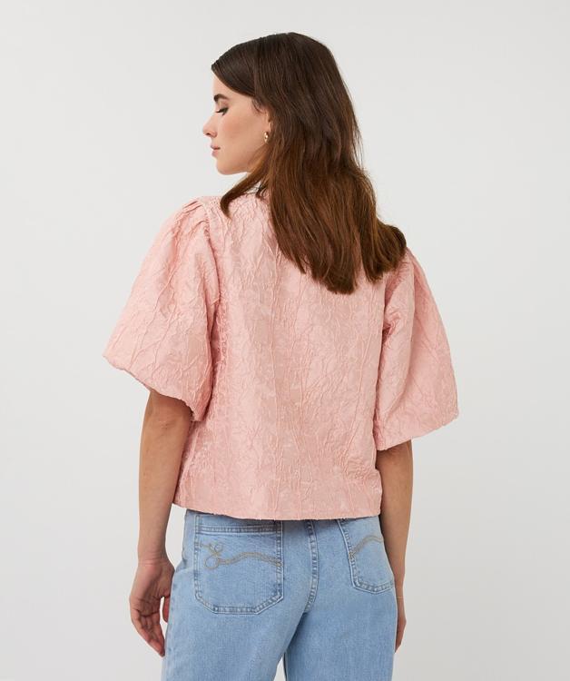 De Esqualo Top SP26.28025 is een dames top uit de categorie Dames, T-Shirts & Tops. Uitgevoerd in een zachtroze, geweven kwaliteit met rijke jacquardstructuur en subtiele glans. De ronde hals zonder kraag sluit hoog met één sierknoop; de voorkant valt verder open zonder zichtbare sluiting. De halflange, licht gepofte mouwen geven volume, terwijl het rechte silhouet mooi aansluit. Geen zakken of zichtbare logo’s. Een stijlvol ontwerp van Esqualo dat licht aanvoelt en vormvast blijft. Verkrijgbaar zolang de voorraad strekt.