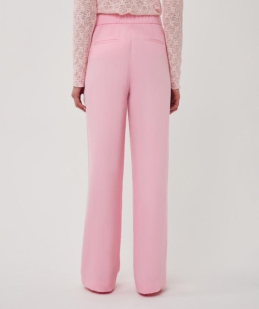 De pastelroze kleur sluit aan bij de pasteltrend en soft tailoring. Combineer met een ton-sur-ton blazer of een frisse witte blouse; kies loafers voor kantoor of hakken voor een diner. In het weekend werkt een lichte knit & sneakers verzorgd. De rechte snit houdt het kledingstuk veelzijdig door seizoenen heen.