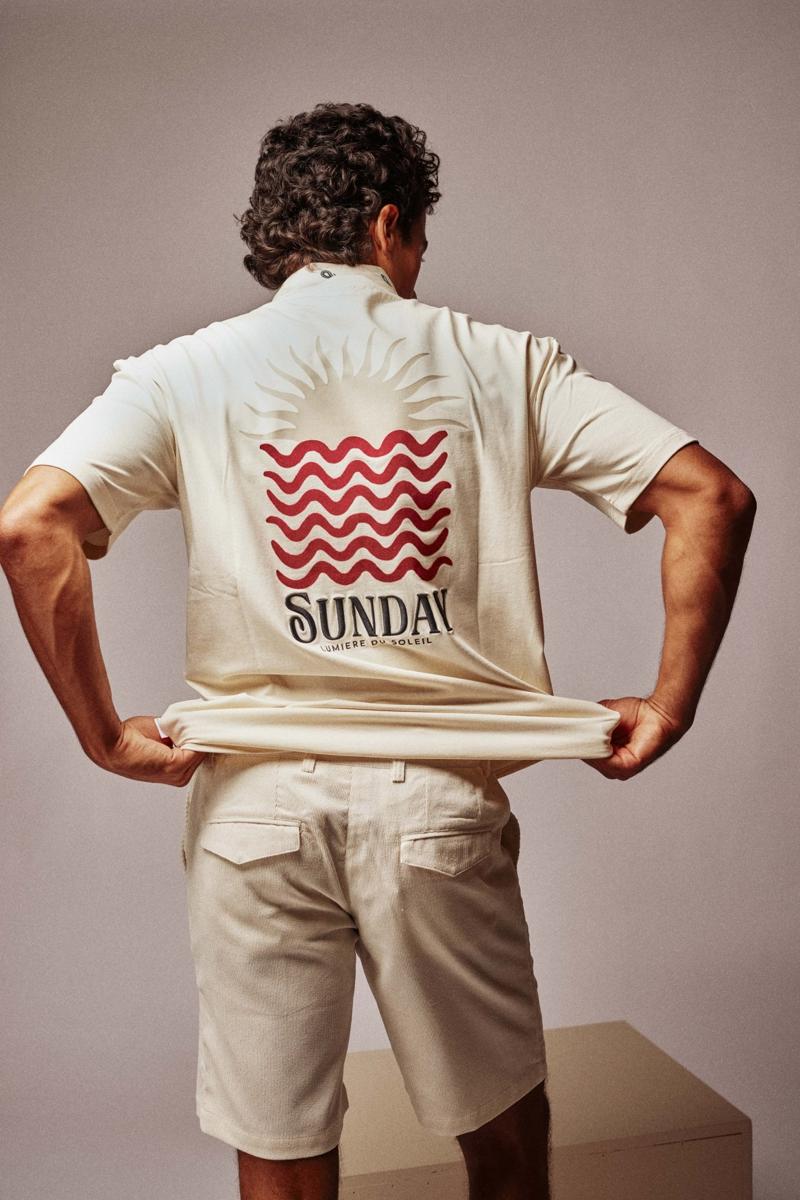 De ecru kleur met wijnrode accenten geeft dit heren T-Shirt een frisse, grafische uitstraling. Combineer met een indigo jeans, een beige chino of onder een open overshirt voor casual dagen. Draag met witte sneakers voor een cleane look. De opvallende rugprint met SUNDAY maakt het kledingstuk ideaal voor weekend en vrije tijd, terwijl de subtiele borstprint het ook solo stijlvol houdt.