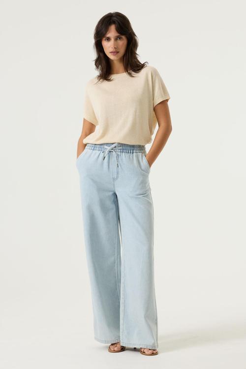 Deze Garcia trui is fijngebreid en lichtgewicht, met korte mouwen en een ronde hals. De subtiele ribboorden langs hals en mouw zorgen voor een nette afwerking. De pasvorm valt recht en het effen, zachte beige oogt clean. Zonder sluiting; je trekt hem moeiteloos aan. Geen zakken of opvallende logo’s, zodat alle aandacht naar het minimalistische ontwerp gaat. Als dames trui van Garcia uit de categorie Truien & Vesten draag je dit kledingstuk comfortabel door de seizoenen heen.