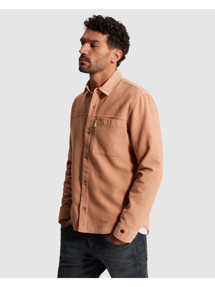 De roestbruine kleur en het effen dessin met wafelstructuur geven het Heren overhemd een rustige, stijlvolle look. Combineer met een indigo jeans voor casual of met een zandkleurige chino en suède schoenen voor smart casual. Draag gesloten als overhemd of open over een T-shirt als licht laagje, passend in elk seizoen.