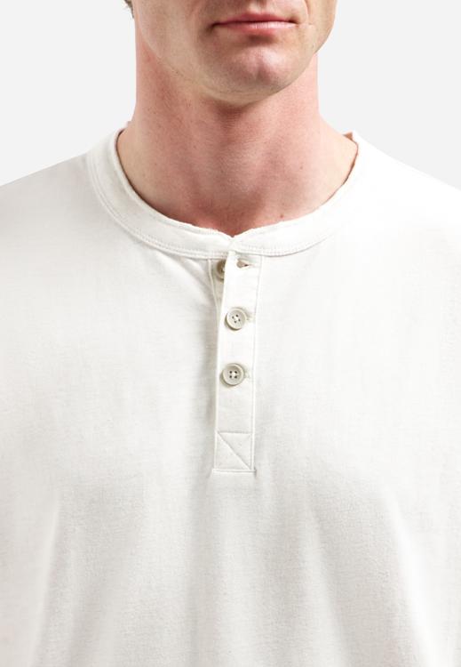 De witte kleur en de henleyhals geven dit heren T-shirt een minimalistische, moderne look. Je combineert het moeiteloos met een chino, denim of short; met een overshirt of licht jack creëer je snel laagjes. Geschikt voor kantoor in smart-casual stijl en relaxed in het weekend. De tijdloze uitstraling maakt het een vaste favoriet in je garderobe.