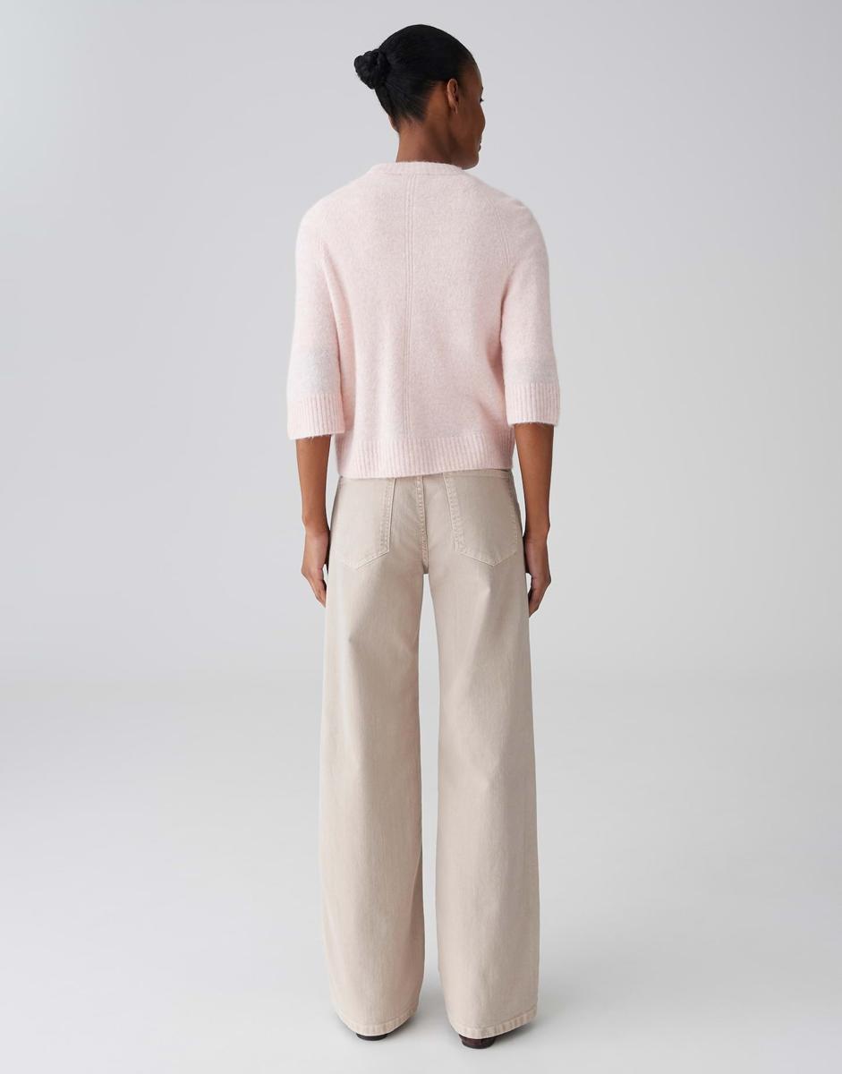 Deze trui heeft een ronde hals, een doorlopende knoopsluiting en een opgestikte voorzak aan de voorzijde. De boord aan zoom en mouwen geeft een mooie vorm, terwijl de halflange mouwen luchtig aanvoelen. De zachte, lichtgewicht breikwaliteit draagt comfortabel. Het effen, zachtroze ontwerp met ton-sur-ton knopen zorgt voor een rustige, verfijnde uitstraling. Een veelzijdig kledingstuk van OPUS voor Dames.