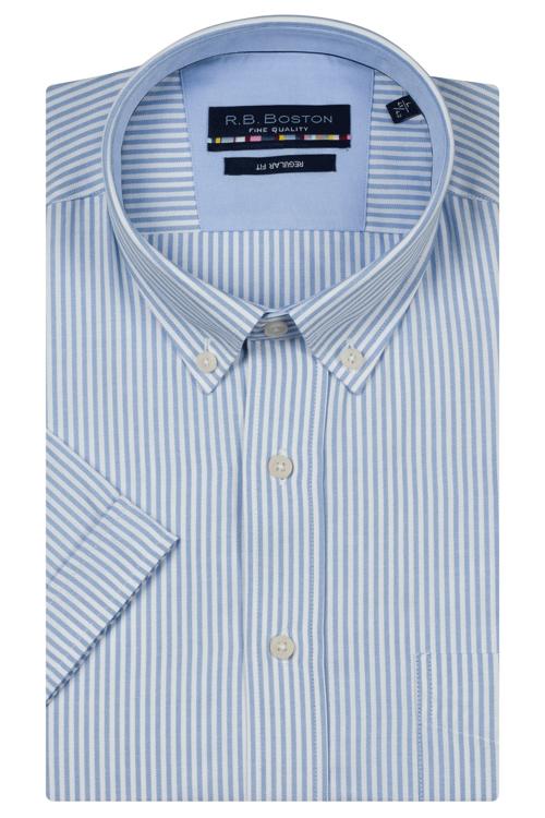 Dit overhemd heeft een button‑down kraag, korte mouw en een doorlopende knoopsluiting. Het lichtblauw‑wit gestreepte dessin oogt fris en tijdloos. Links zit een praktische borstzak. Het materiaal is een licht, soepel geweven kwaliteit die prettig aanvoelt. Als Heren‑model van R.B. Boston mag je rekenen op een nette pasvorm en betrouwbare afwerking die lang mooi blijft.