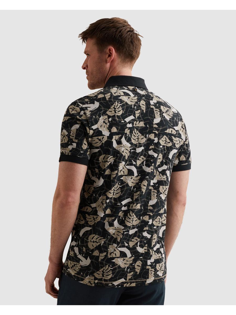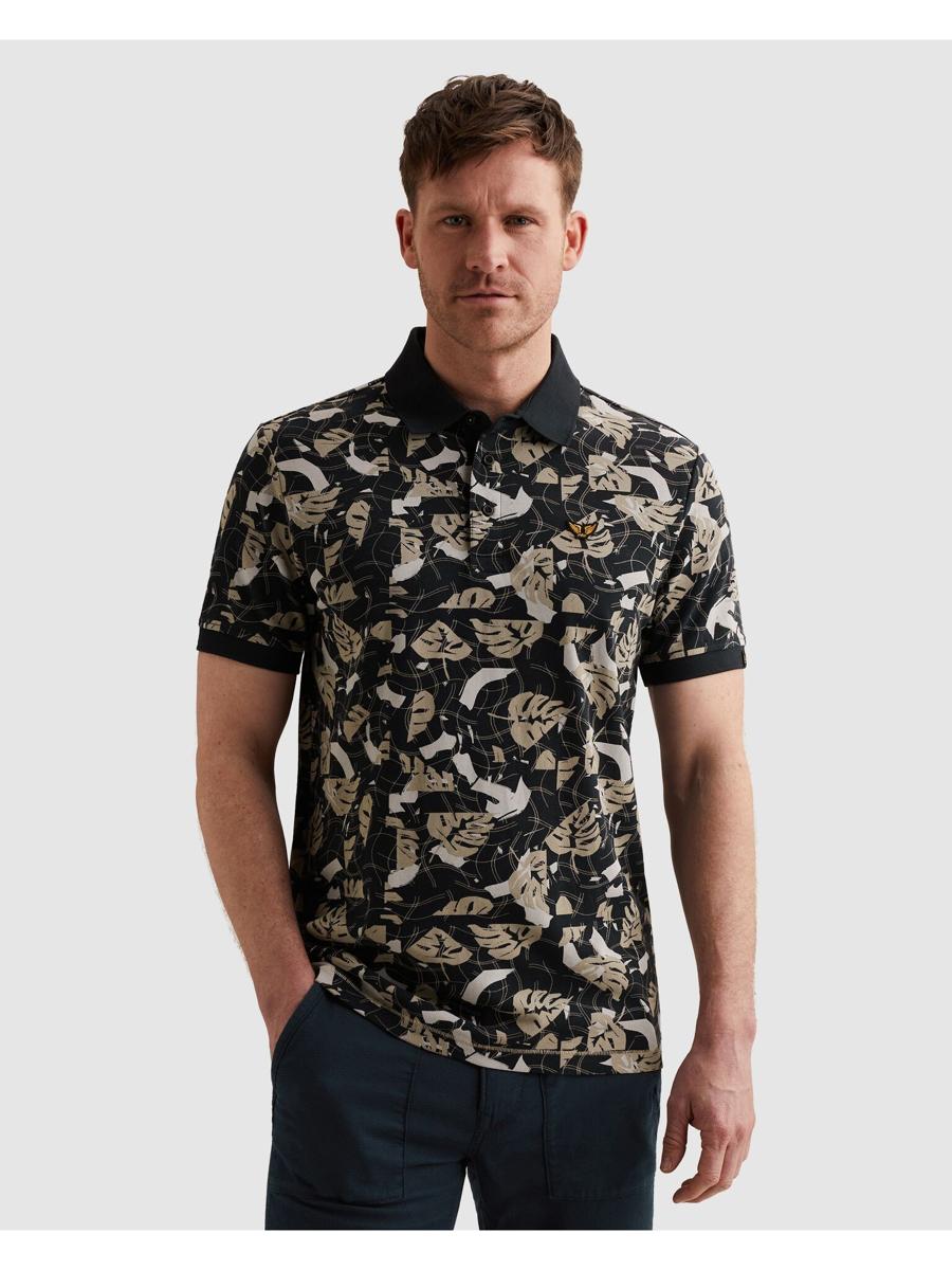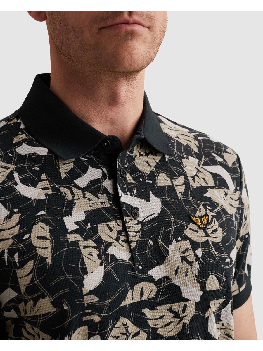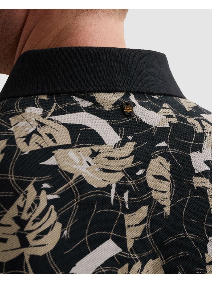 Deze polo van PME Legend is uitgevoerd in een soepele piqué-kwaliteit met korte mouwen voor prettig, ademend draagcomfort. De effen, geribde polokraag sluit aan op een korte knoopsluiting. Het all-over blad dessin in zwart met zand- & grijstinten geeft het kledingstuk karakter. Op de borst prijkt het PME Legend vleugel-logo; zonder borstzak voor een strakke look. Een populaire keuze binnen Heren, T-Shirts & Polo's, en ideaal als dagelijks kledingstuk.