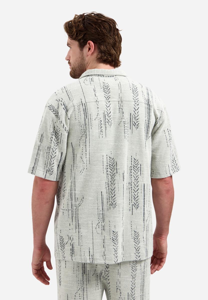 De kleur oogt fris lichtzand met grijze print; dat geeft een ontspannen, moderne herenstijl. Draag het met de bijpassende korte broek, of combineer met een effen chino of denim. Perfect voor zomerse dagen, een etentje of vakantie. Voeg een wit T-shirt eronder toe voor een gelaagde look.