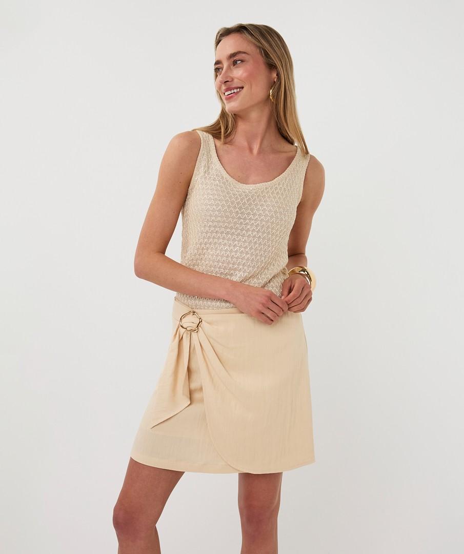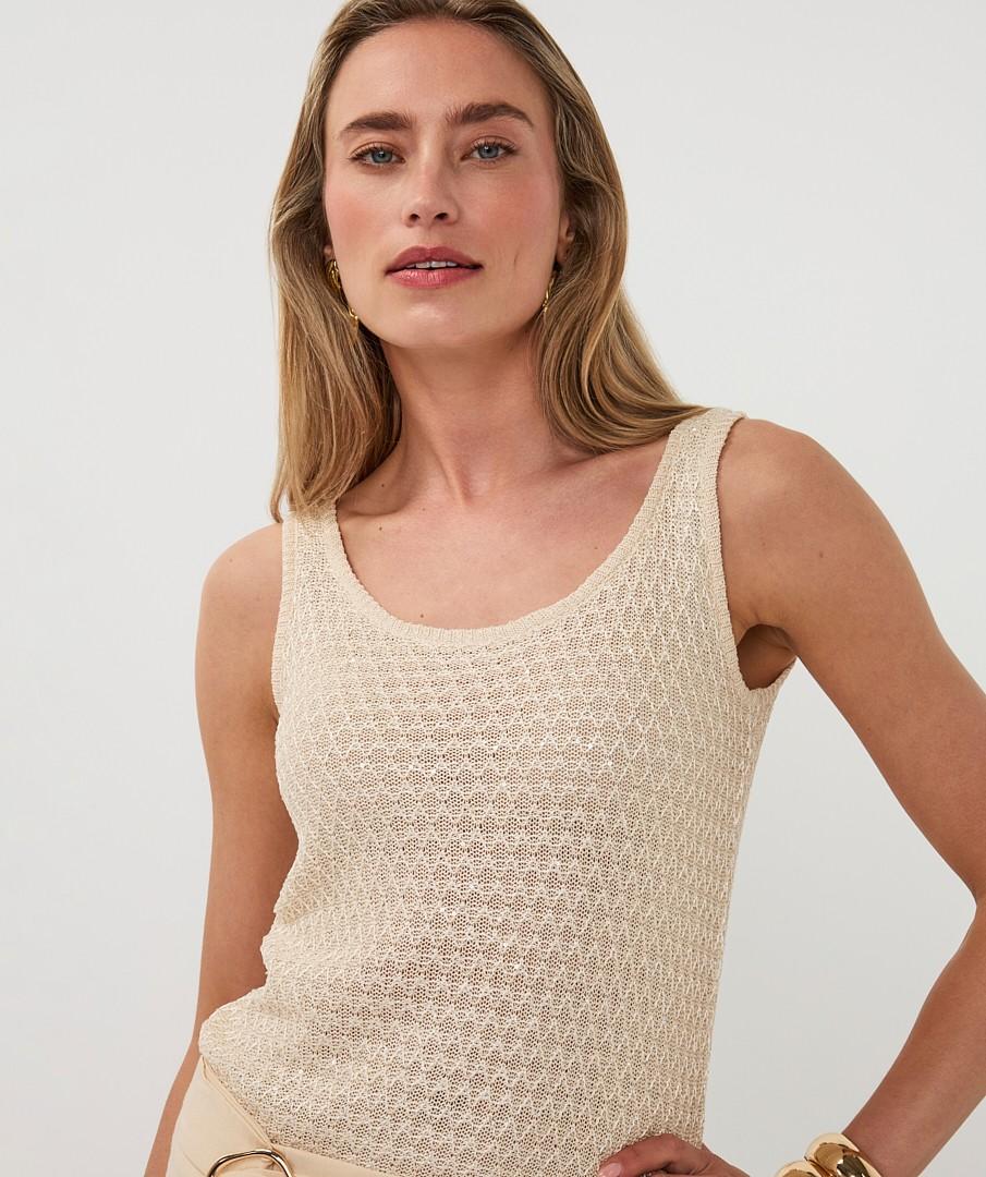 Trendalert: opengewerkte breisels en lichte neutrale tinten. Deze dames top draag je solo op warme dagen of gelaagd onder een blazer. Combineer met een linnen broek, denim of een satijnen rok; voeg sandalen of sneakers toe voor een moderne look. Geschikt voor werk, citytrip of diner.