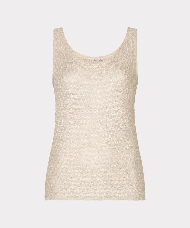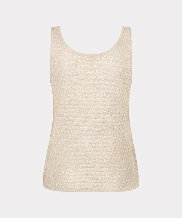Deze dames top is mouwloos, heeft een ronde hals en geen sluiting; je trekt de top eenvoudig aan. Het lichtgewicht, fijn opengewerkt breisel toont een subtiel reliëf voor een elegante look. Het ontwerp zit comfortabel met lichte rek. Zonder zakken en zonder zichtbaar logo; het dessin is all‑over geweven. Een veelzijdig kledingstuk binnen T‑Shirts & Tops van Esqualo.