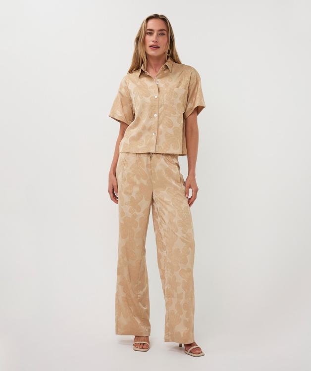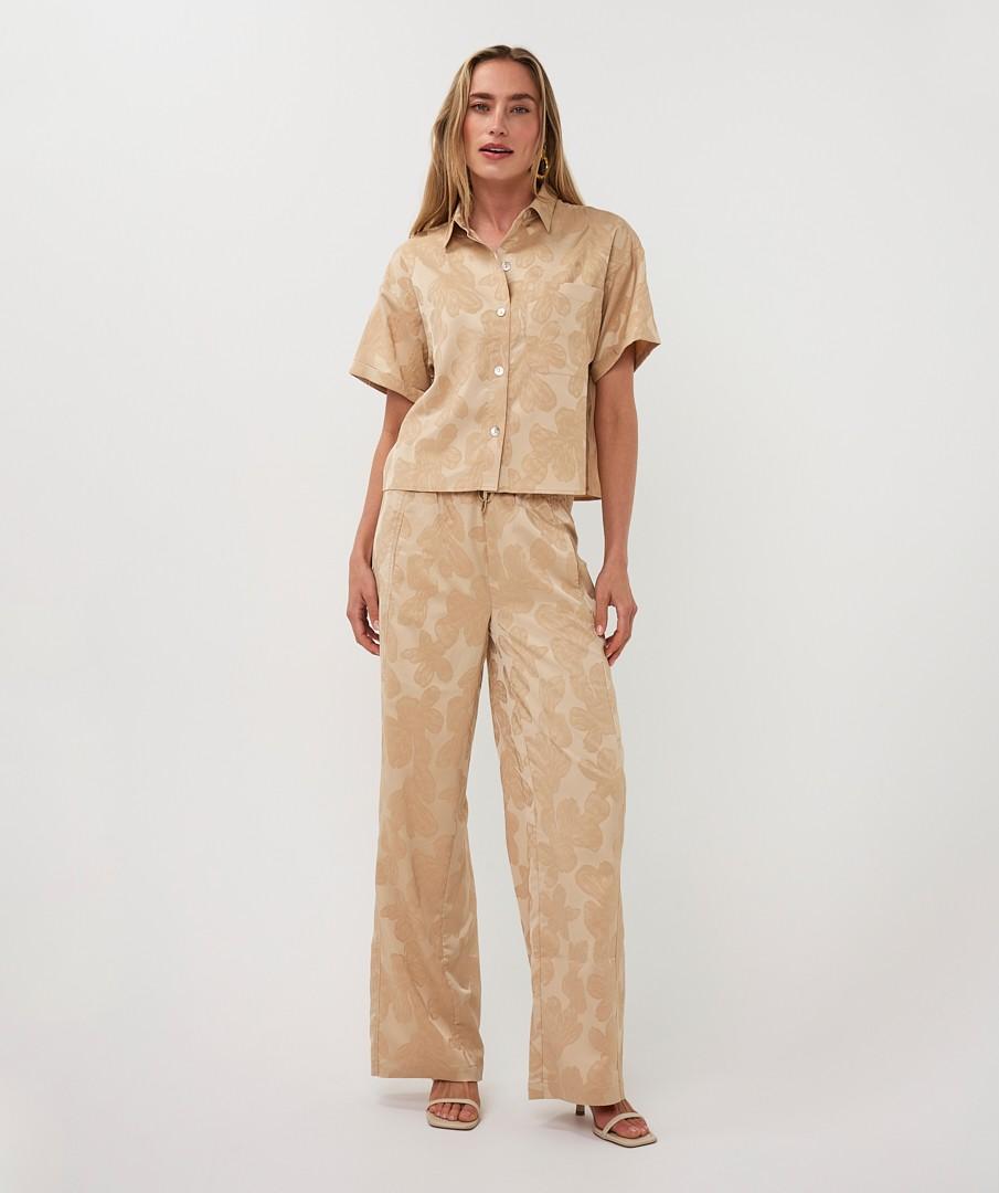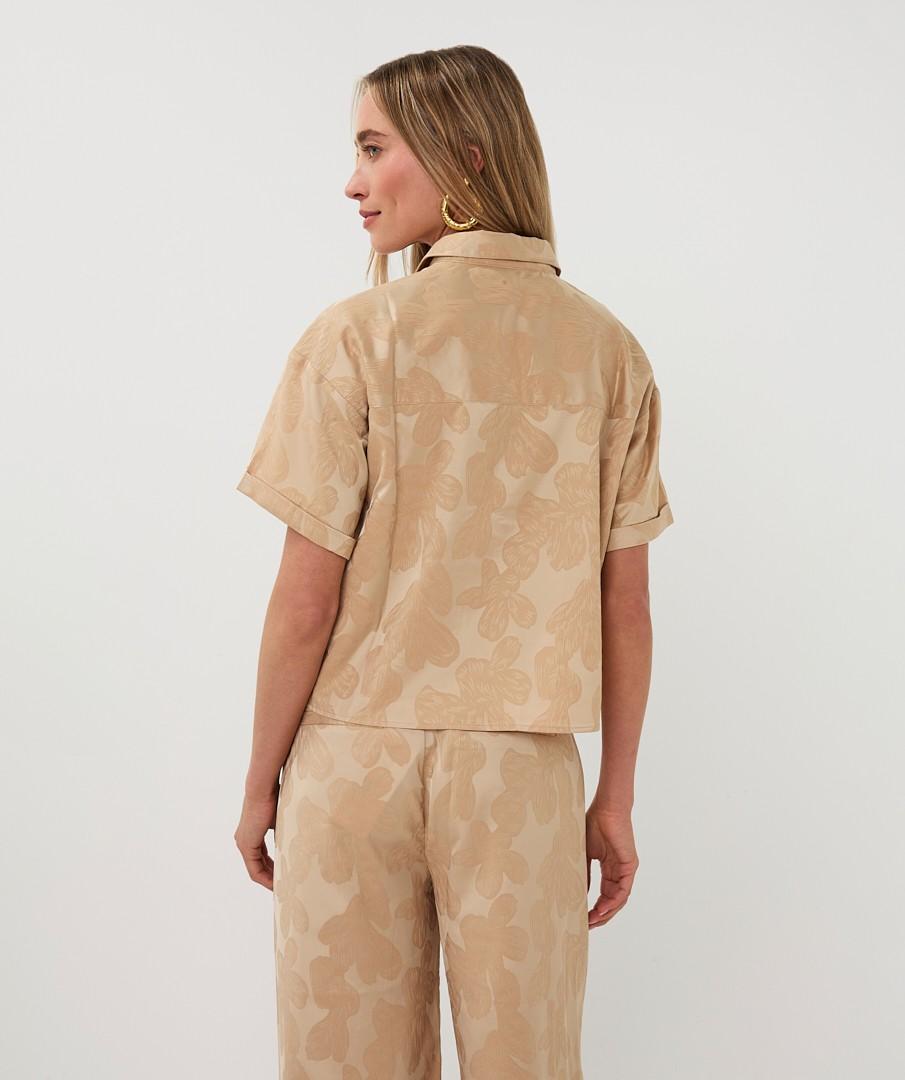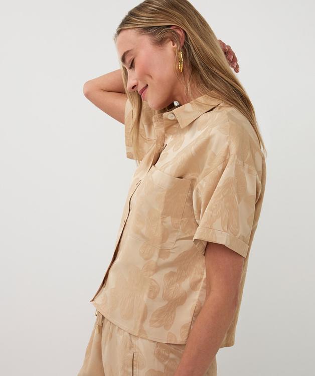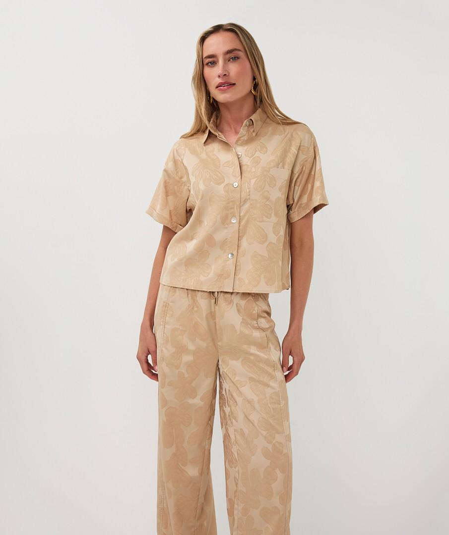 Deze dames top past naadloos bij de trend van ton-sur-ton naturals en subtiele florals. Combineer met een linnen broek, high-waist jeans of een blazer; in het weekend met een rok en sandalen. Dankzij de korte mouwen en het rustige dessin draag je het door het seizoen heen. Voorraad is beperkt, dus wees er op tijd bij.