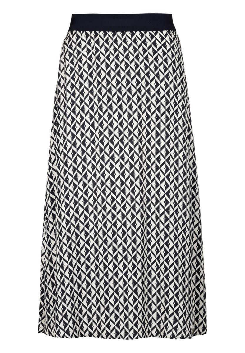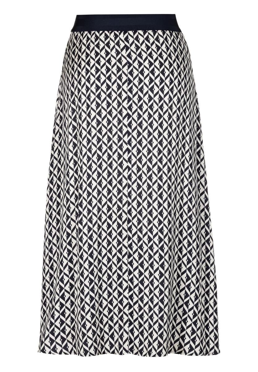 De grafische print past perfect bij de trend van modern monochroom. Combineer als damesrok met een effen blouse, een fijngebreide trui of een nette blazer; draag met loafers voor overdag of met hakken voor een diner. De rustige kleuren maken mixen eenvoudig & stijlvol, terwijl de A-lijn je silhouette elegant laat uitkomen.